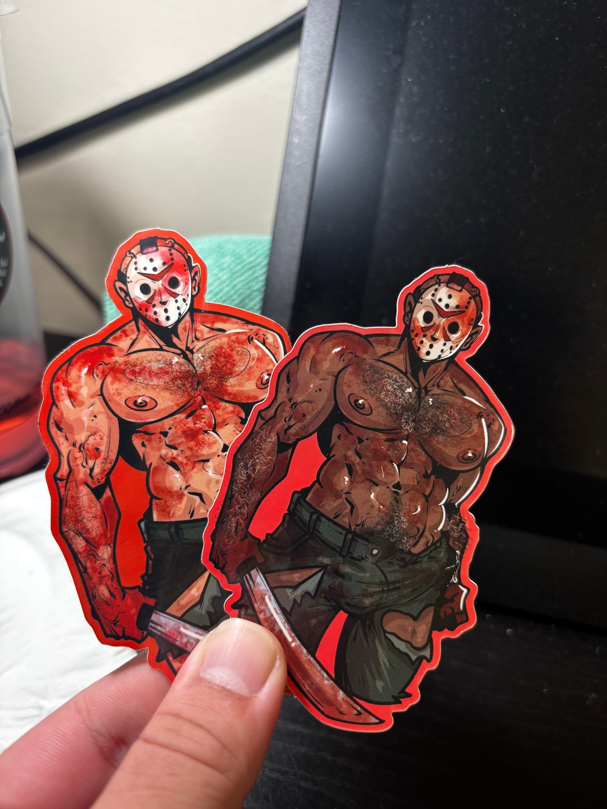 This mini drop is inspired by some of your favorite scary movies.'The Slasher' hacks their way into your heart and other parts! Get your hands on this spooky icon, and have in hand a piece of horror pinup! Due to a manufacturer error the design for the items are now much darker than planned.